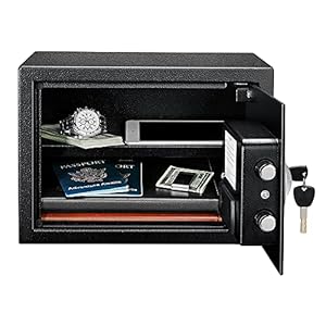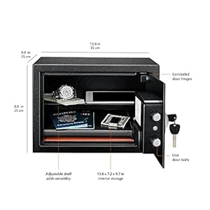 Strong steel construction with carpeted floor to protect against scratches and damage; pry-resistant concealed hinges; adjustable/removable interior shelf. Safe is not fireproof or waterproof.