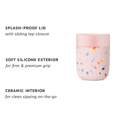 PREMIUM, FOOD GRADE MATERIALS: Crafted from durable ceramic with a matte silicone wrap and a BPA-free press-fit lid, this reusable tumbler is a stylish update to disposable plastic cups or metal to-go mugs — the perfect gift for coffee and tea lovers; Mug is warm to the touch with a hot a drink inside